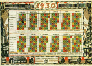 El 1929 la Unió Soviètica va aprovar un nou calendari en què les setmanes tenien 5 dies. Cada dia tenia un color assignat diferent. Els treballadors van ser organitzats en cinc grups i a cadascun se li assignava un color  que determinava el seu dia de descans (groc, verd, vermell, blau i lila),. La idea era evitar els festius comuns i de caire religiós amb l’argument que es reduïa la productivitat. El plantejament no va funcionar (les families no es podien reunir en dies festius si no se li haien assignat el mateix color!), i el 1932 es va substituir per un nou calendari amb setmanes de 6 dies. Finalment, el 1940 es va reinstaurar la setmana de 7 dies amb el diumenge com a dia de descans.