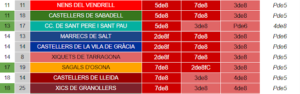 Finalment, no han pogut revalidar la gamma de 8 —i s’han quedat amb gamma de 7— els Castellers de Mollet, Castellers de Berga, Castellers de Cornellà, Castellers del Poble Sec i Castellers d’Altafulla.